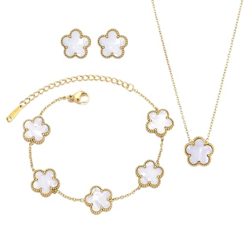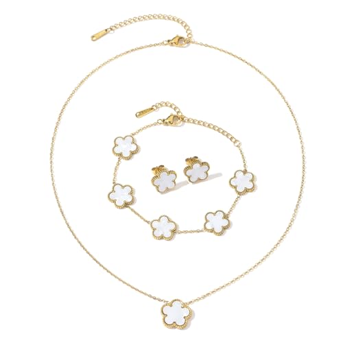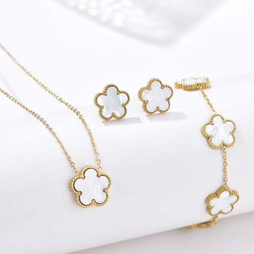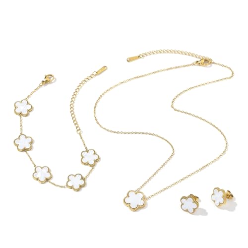 Clover Neckalce Earring Set for Women 14K Gold Plated Stainless Steel Four Leaf Clover Jewelry Set