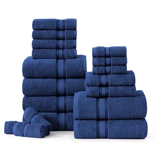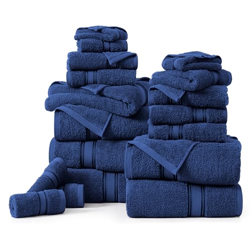 LANE LINEN 100% Mercerized Cotton Bath Towel Set of 18 – Zero Twist Shower Towels, 6 Bath, 6 Hand Towel & 6 Washcloths, Quick-Dry, Luxuriously Soft & Durable, Perfect for Everyday use – Navy