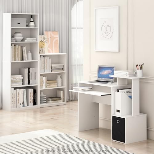 Furinno JAYA Book Shelf, 5-Tier Bookshelf, Bookcase with Adjustable Shelves, 9.5 x 24.5 x 71.2, for Organization and Storage, for Living Room, Bedroom, Home Office, White