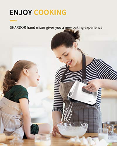 SHARDOR Hand Mixer Electric, 6 Speed & Turbo Mixer Electric Handheld, Snap-On Storage Case,5 Stainless Steel Accessories for Whipping, Mixing Cookies, Brownie, Cakes, Dough Batters, White